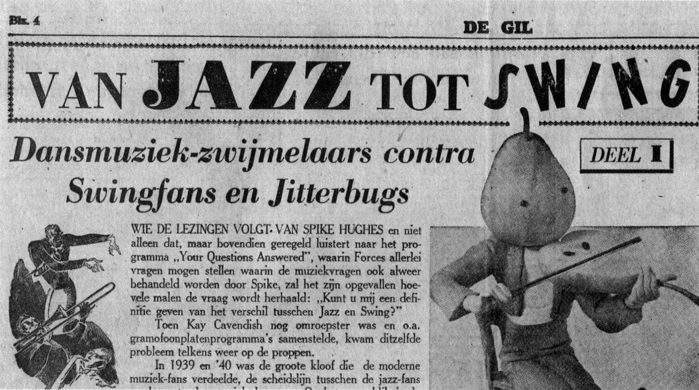 De Gil won nog aan populariteit toen in het tiende nummer een jazzrubriek werd gestart. De redactie werd overspoeld met positieve reacties van ‘swingvrienden’. En het kon nog gekker. Terwijl het Departement van Volksvoorlichting en Kunsten nog kort tevoren met trots had geconstateerd dat, dankzij de inzet van de Nederlandse Kultuurkamer, ‘…de jazz- en negermuziek in Nederland definitief van de baan is ‘ [4] startte Waterman in juli 1944, uiteraard met goedkeuring van de Duitsers, voor de Hilversumse genazificeerde zender een radioprogramma met jazzmuziek onder de naam Radio Gilclub. Er werd vanaf het begin, vooral door de jeugd, enorm op gereageerd. Ik laat hierover Dick Verkijk (1929) aan het woord, die destijds bijzonder van de Gilclub heeft genoten: